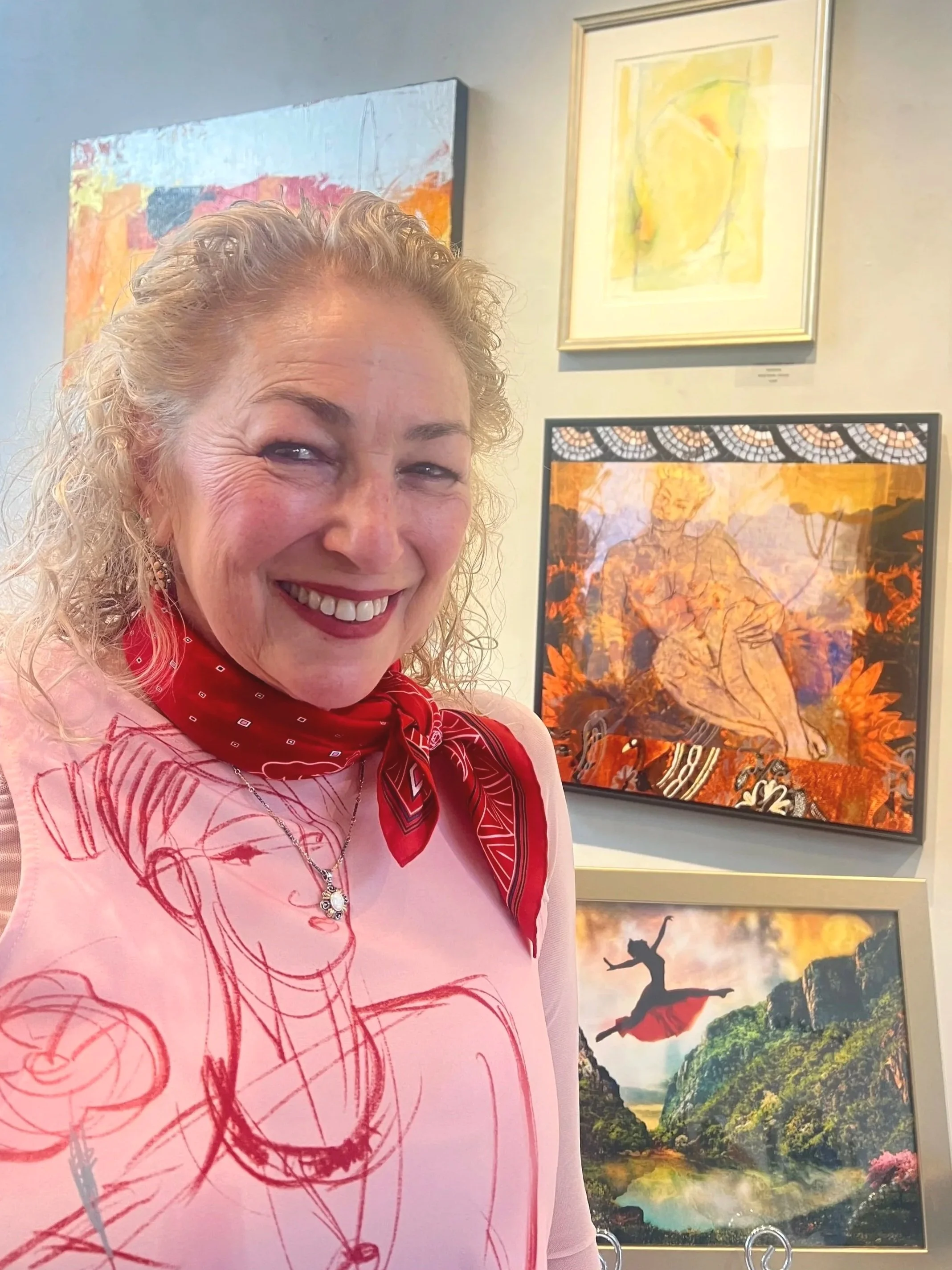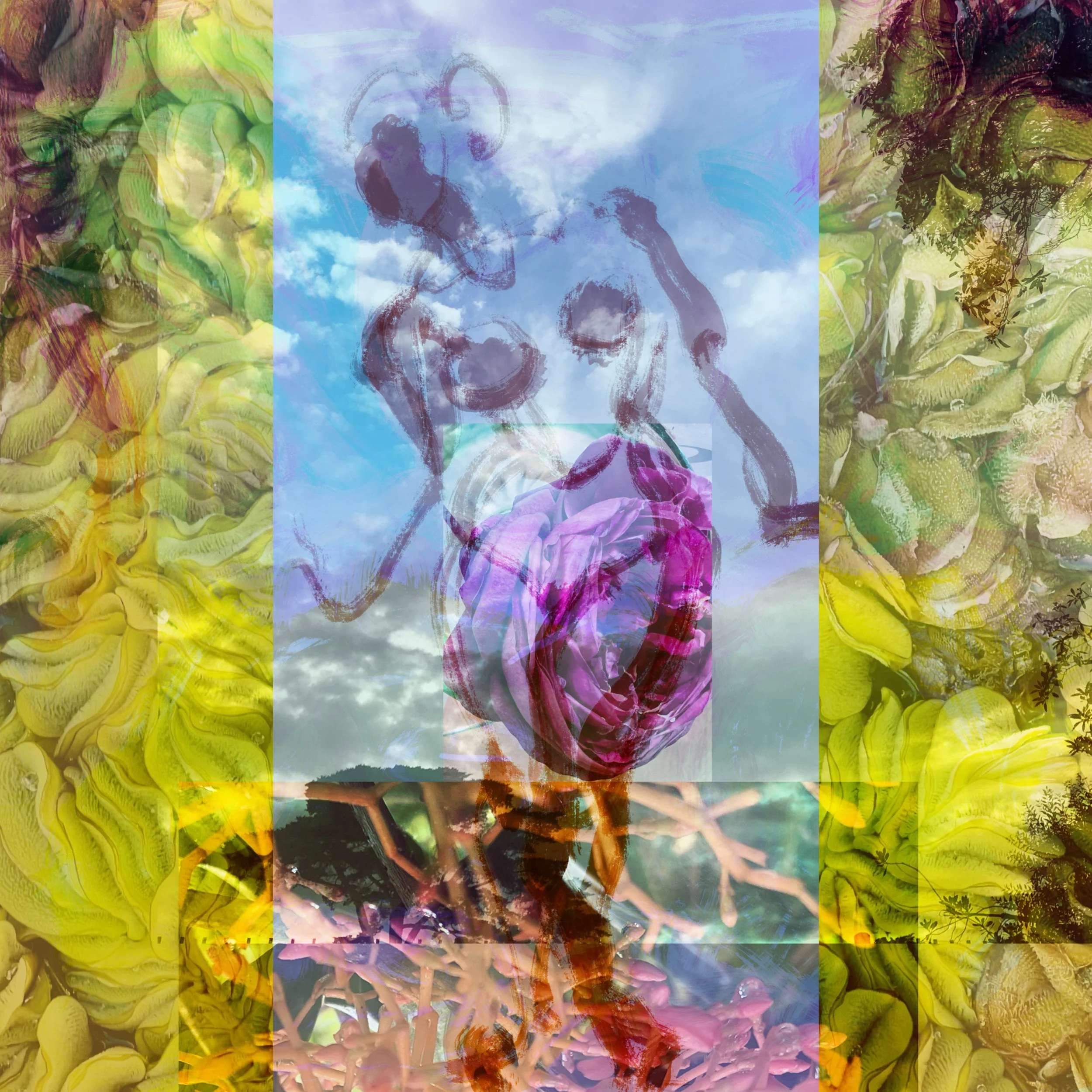 It is about strong women and our bodies merging with nature, in layered colors and textures, through drawings, paintings, and photos, all created on an iPad.