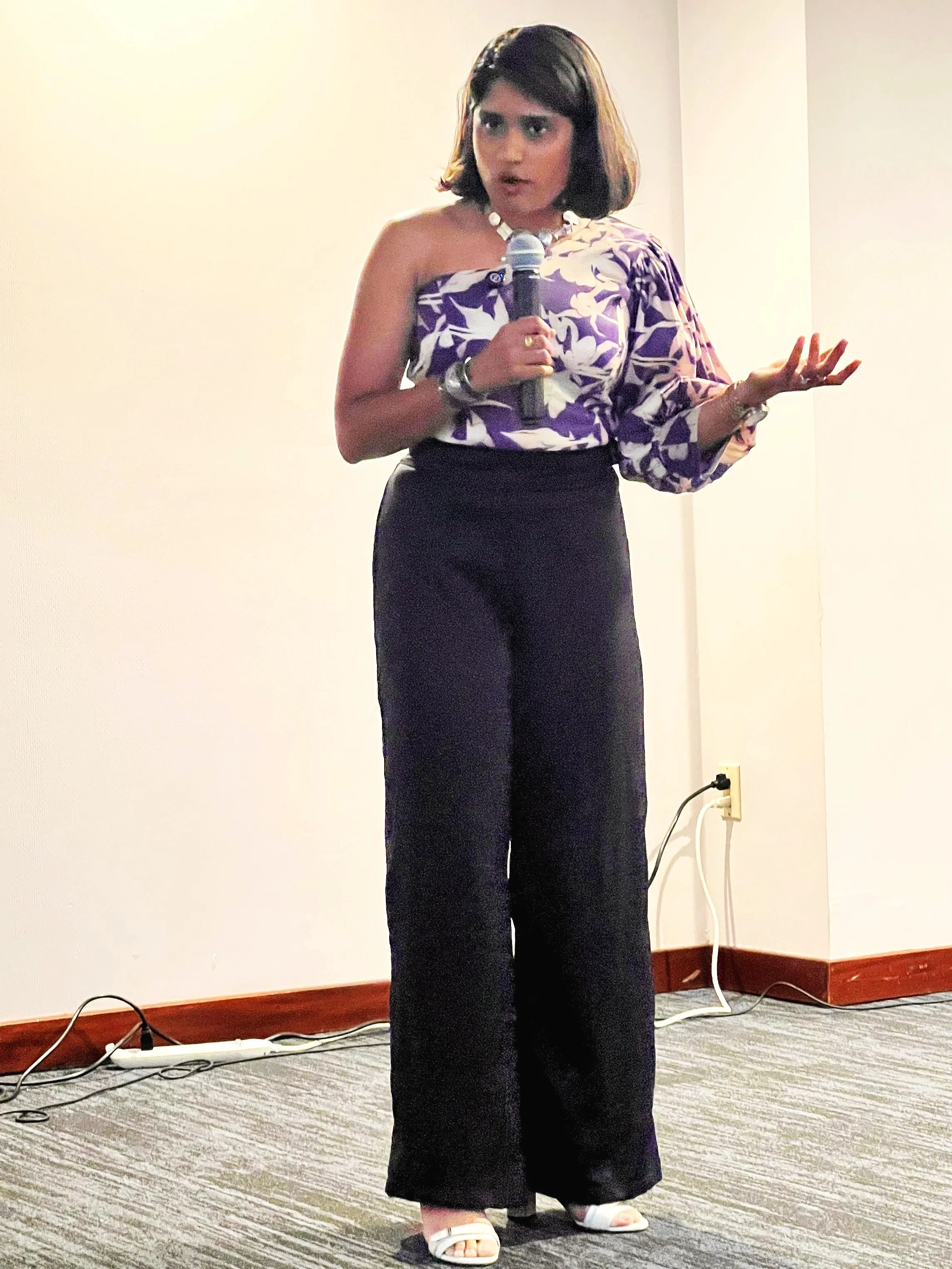NCWCA Member Bushra Gill is discussing her work at Olive Hyde Gallery in Fremont.