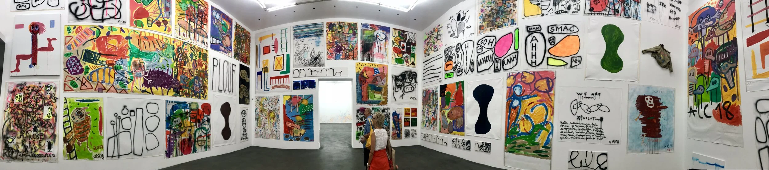 I saw a wonderful photo exhibition by Richard Learoyd at one of my most beloved art spaces in Barcelona - a gorgeous, intact mansion, Fundacion Mapfre. The artist uses a camera obscura. There’s a lot of reflection in my photos which distracts from this extremely powerful man + octopus tattoo image. Turns out this artist exhibits his work right in SF at Fraenkel Gallery and Pier 24 Photography. Go figure! His photos resemble paintings and I especially enjoy his figurative work. The image on the right below shows some of the details in the gallery space including mosaic floors, gilding, and artistic murals inset into the walls.