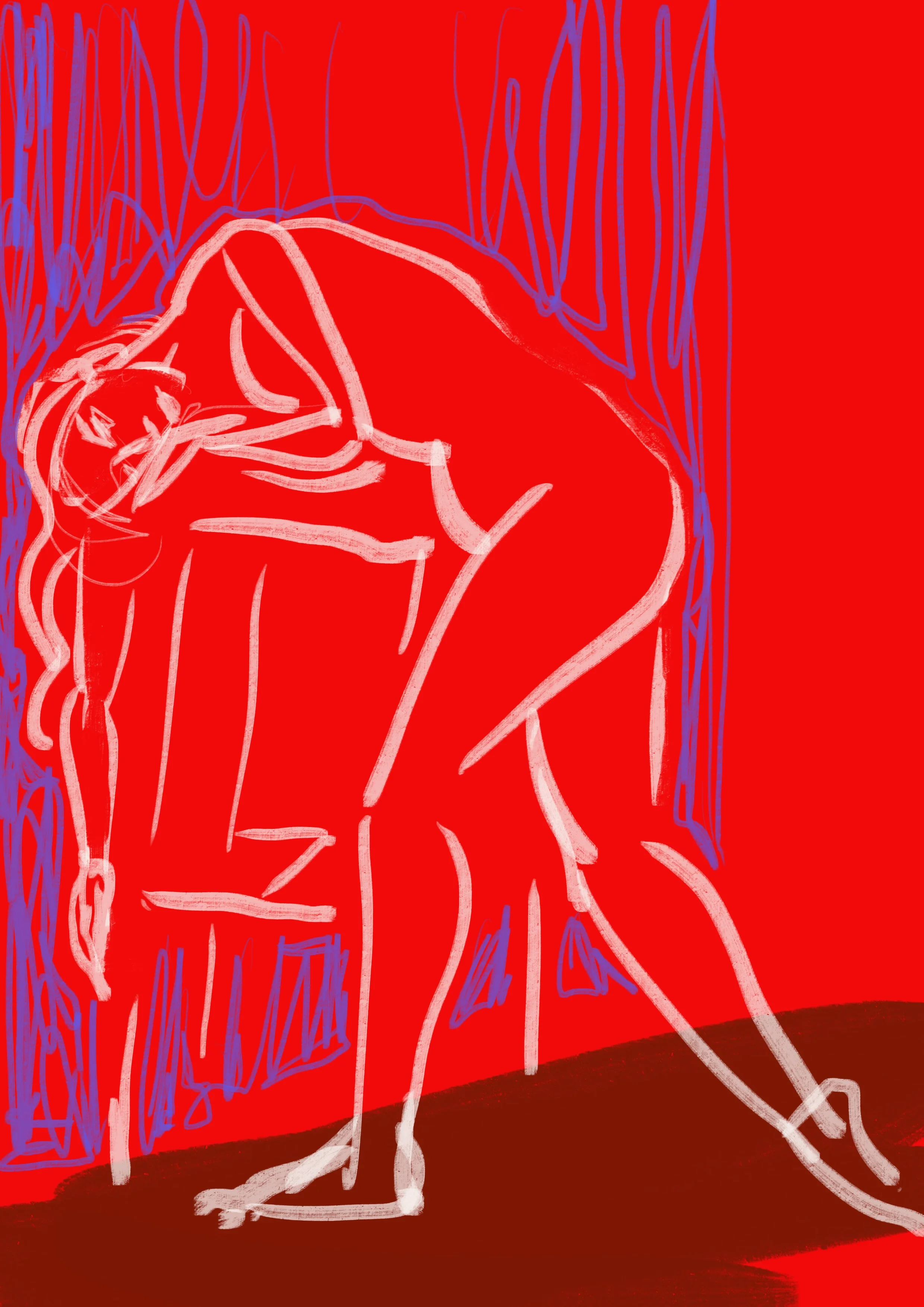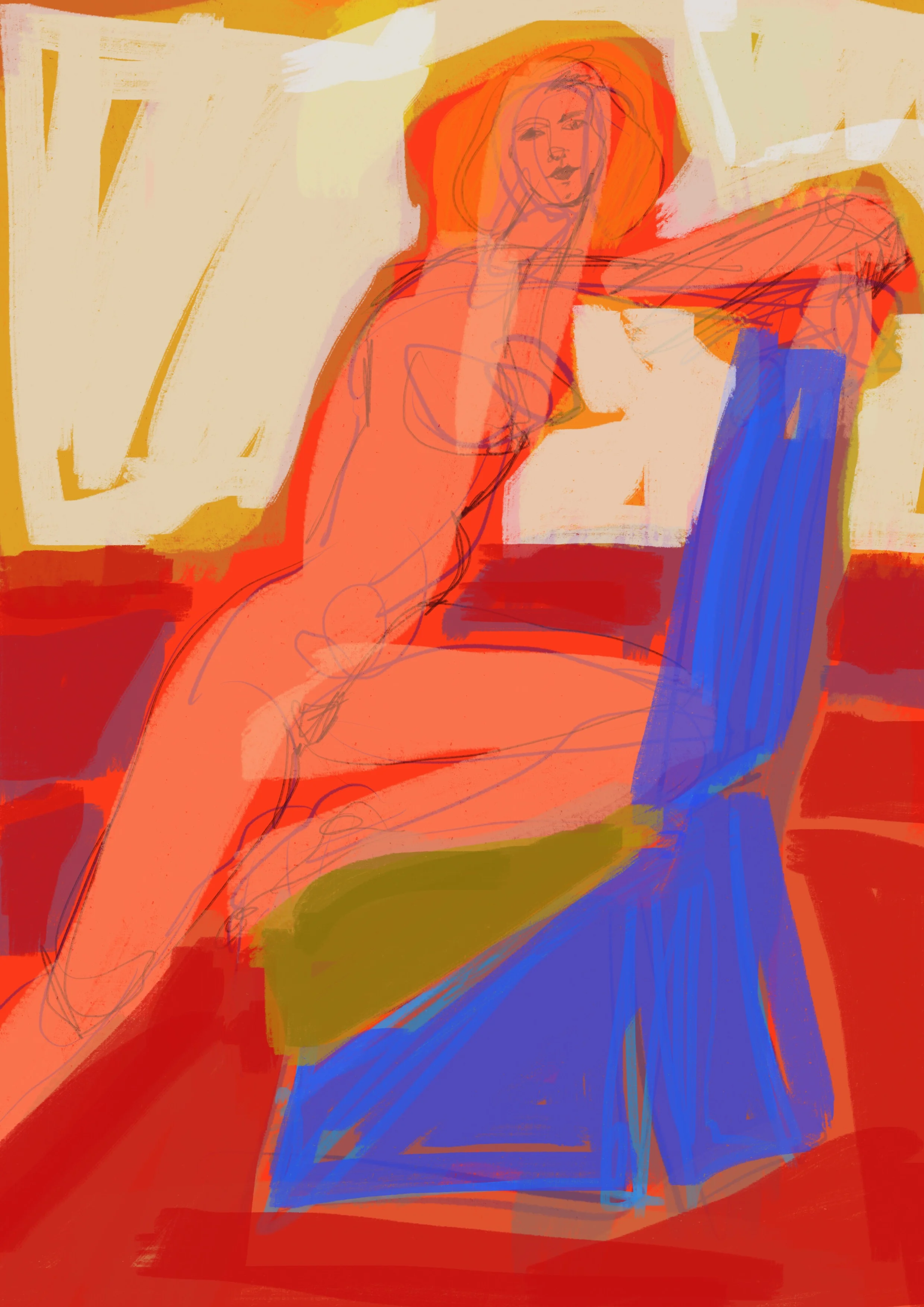 This is my first venture into doll making. Here's a photo of my almost finished doll, from my original artwork titled "Woman on the Bay Bridge". I've always wanted to make dolls. As a kid, I had some very unique art dolls, made by fantastic fiber artists. Spoiled! Using my leftover fabric from my first Lycra dress prototype, this qualifies as a rag doll. My work starts out as a figure drawing, painting, or collage. If I make it into fabric then I scale it and create a repeat pattern. In this case, I've extracted the original art work from the repeat pattern of the fabric to make a single doll. She's about 6" wide (foot to foot) and 9" tall. And she feels great to hold and squish!