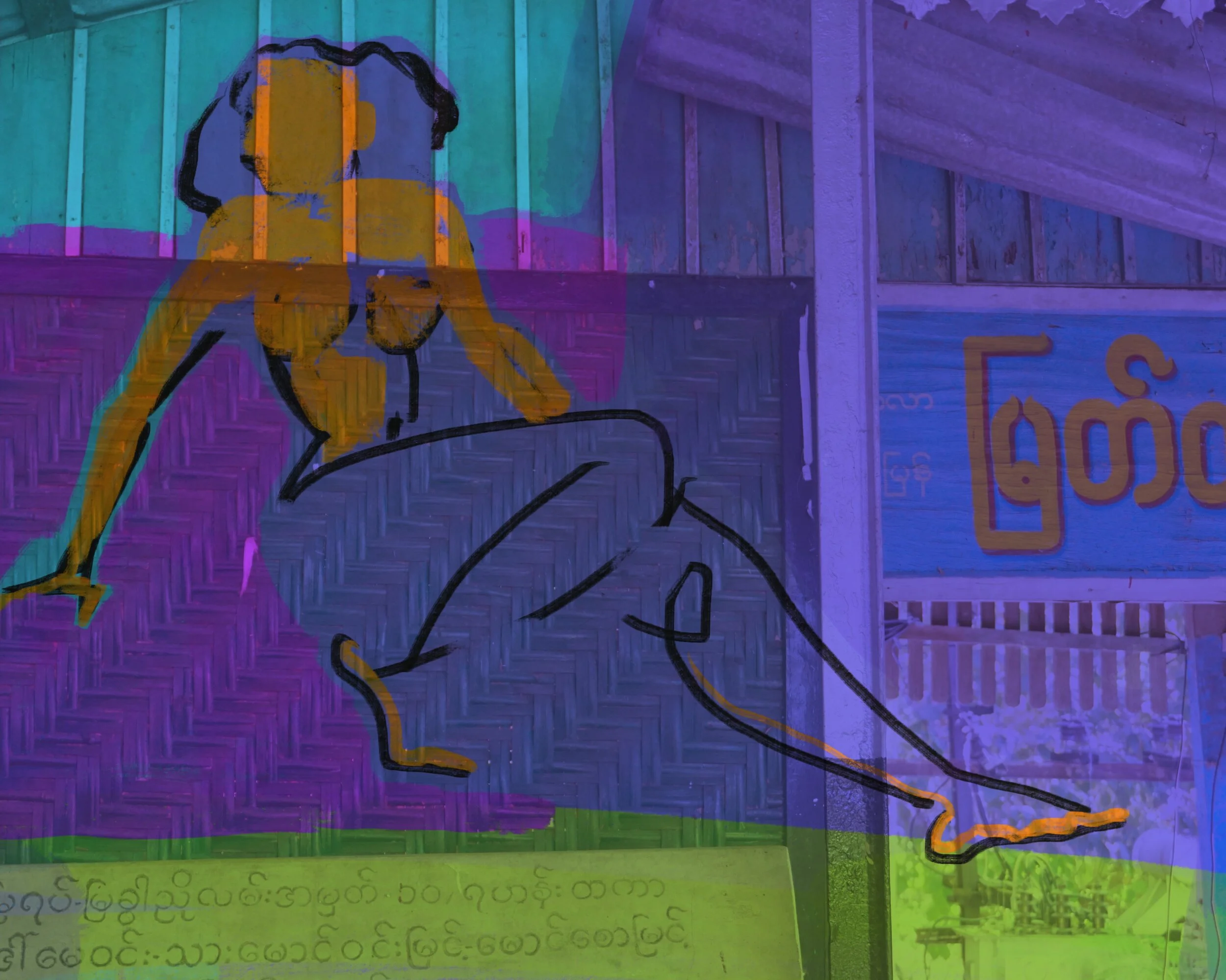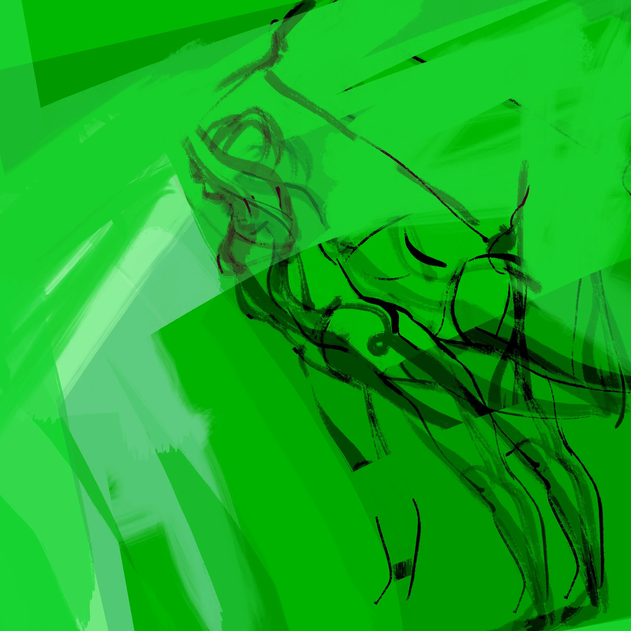 Obliterated drawing of the inspiring model Kyla in an aerial dance pose with limbs wrapped in her silks. This 36” square print (Ed 1/1/) is on archival paper and will appear in the show hung on a wall that is contiguous with my new series of five 8’ long hanging sheer panels. There will be little pencils there too so you can write directly onto the print.
