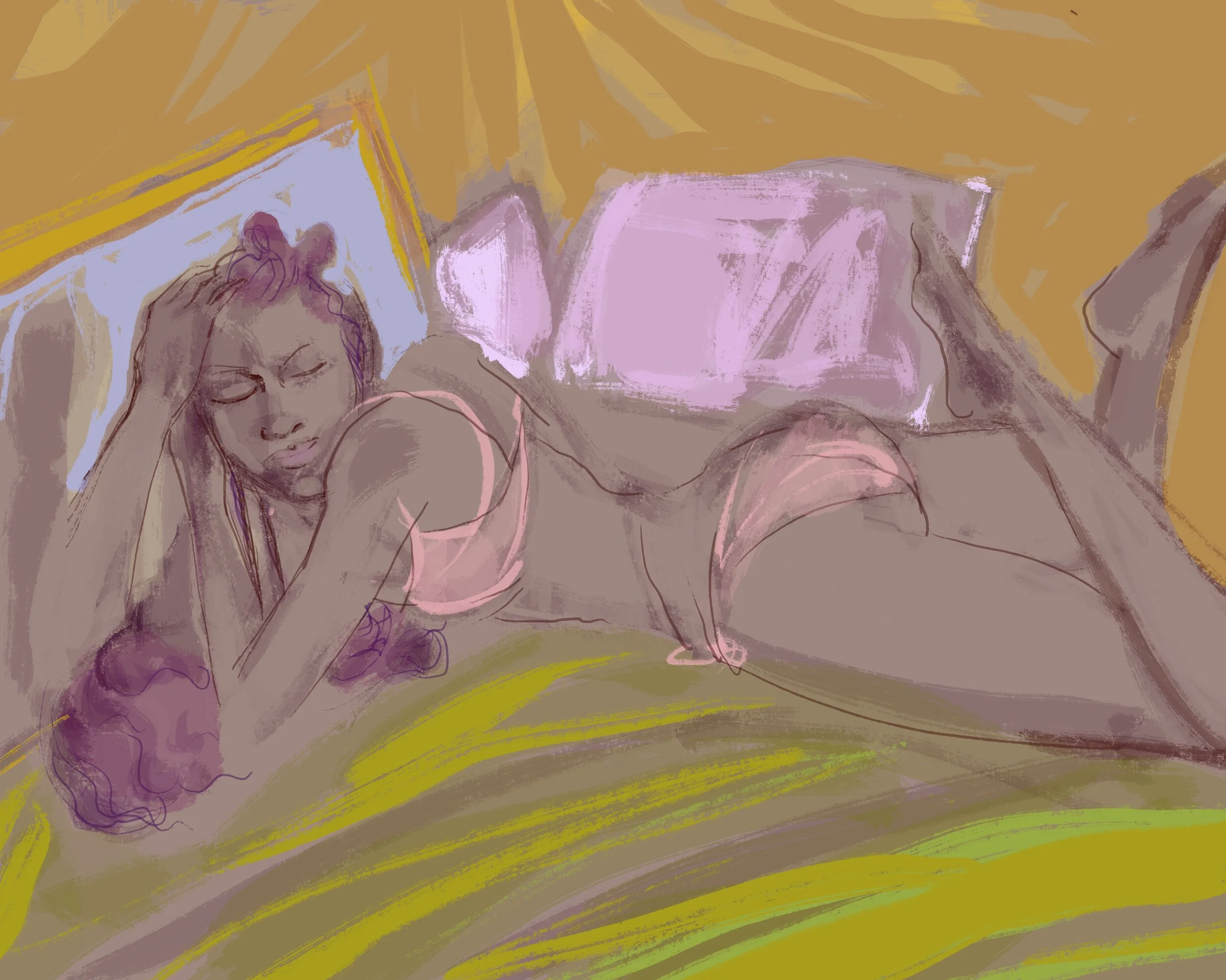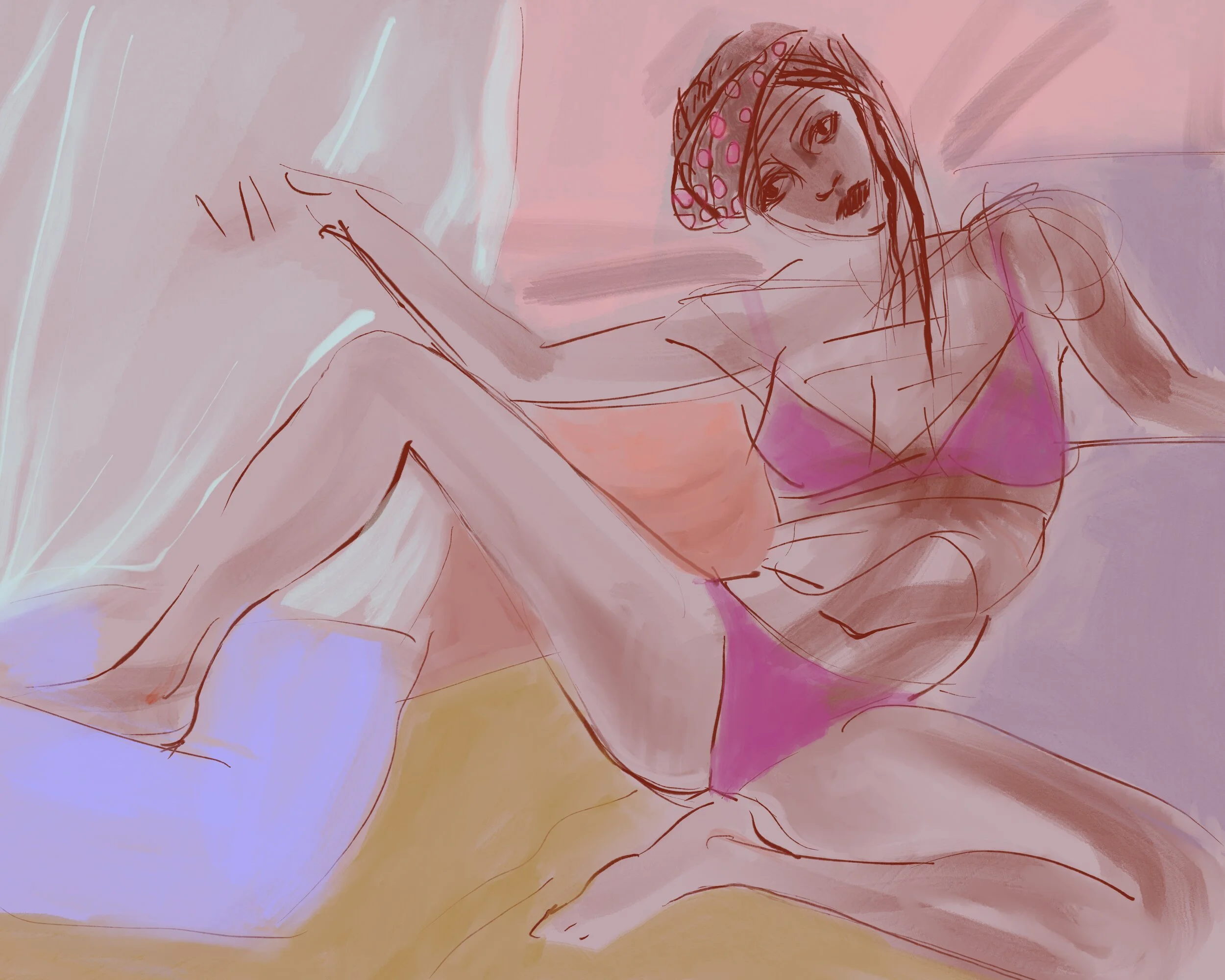 An unintended advantage of the virtual session: Models are often wearing underwear or bathing suits - and this is because they feel unprotected by such easy access. This trend makes virtual drawing session art more appealing to a broader audience who might not buy a nude.