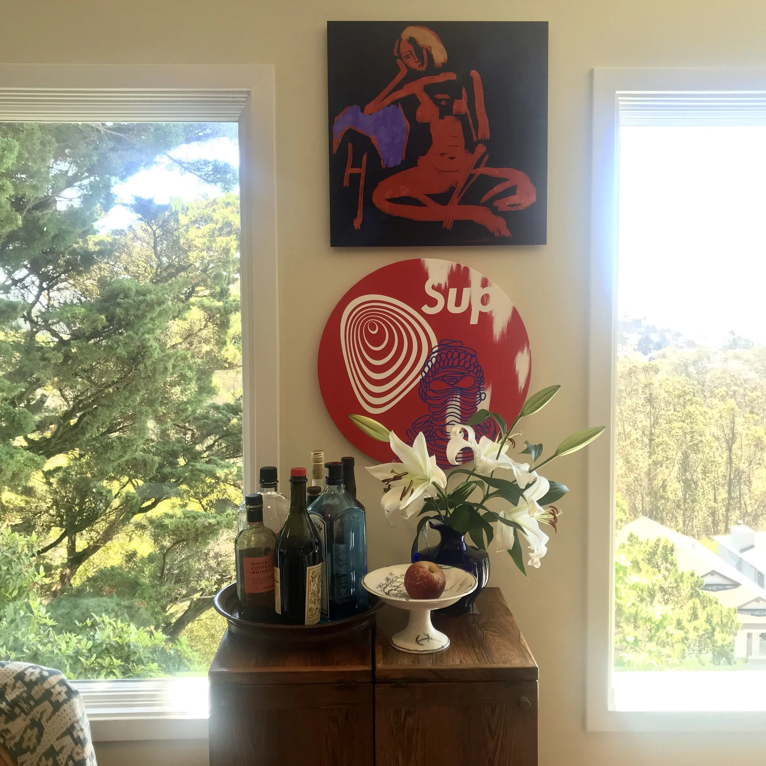 At the home of my buyer after delivering The Situation, from my SFWA show, the “Word Series”.