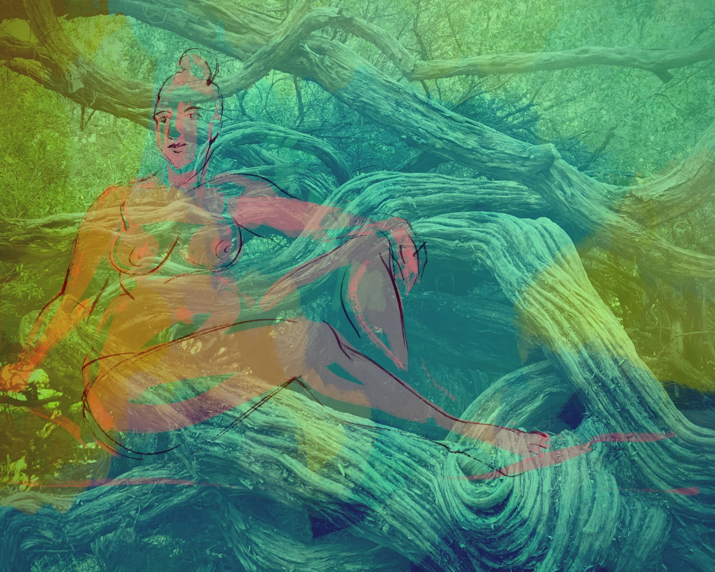 “Christina in a Bed of Roses” is new in my ongoing digital original collage series. A new wide format, this is a life drawing of a model in San Francisco combined with my abstract paintings and photos. See these Golden Gate Park roses along with antique fabric and lace from a museum in Provence.