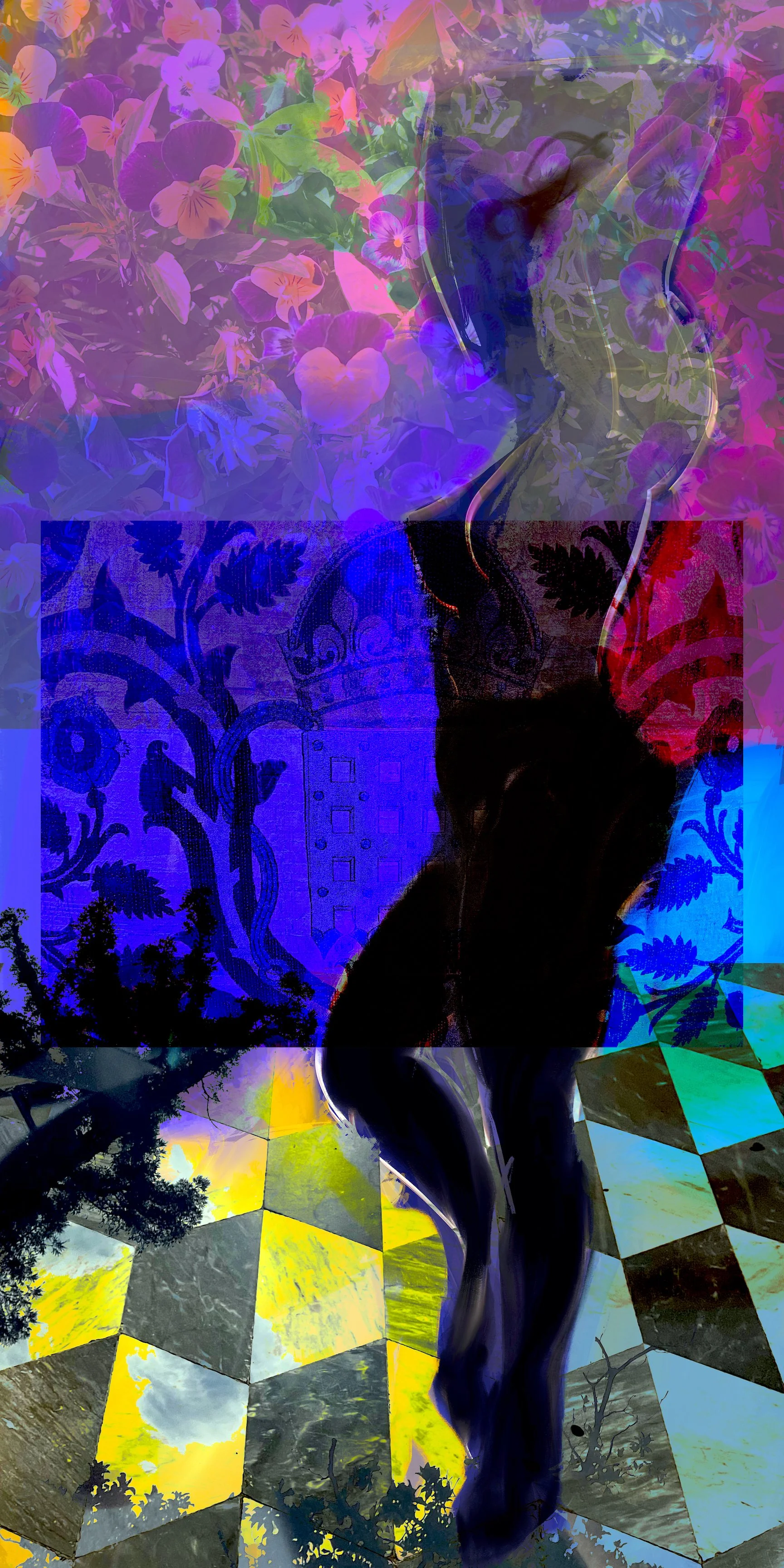 I love to create multiple versions from one original digital drawing of a life model. I select my favorites – adding and subtracting translucent layers of my art and photography. Then it’s wherever my iterations take me. This way I can focus my attention on a visual theme and it’s easy to show my work in groupings. All of my finished pieces are part of a series, often in the same sizes or proportions.